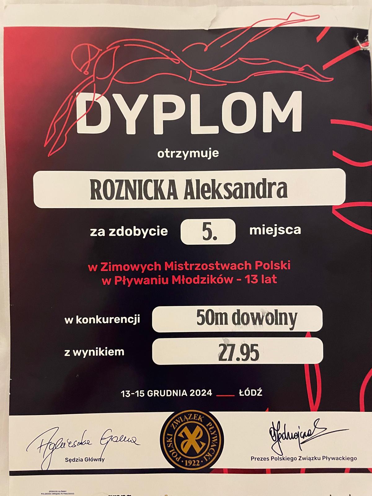 Gratulacje dla Oli za tak świetne rezultaty i za walkę z najlepszymi w Polsce! Piąte i szóste miejsce to naprawdę imponujące sukcesy, zwłaszcza z poprawionym rekordem życiowym na 50 m stylem dowolnym.